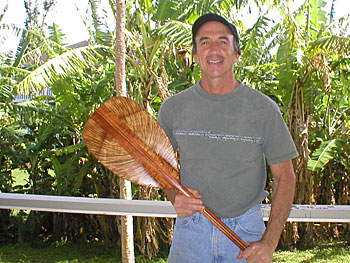 With no actual fine woodworking experience beside his construction background, Frank set out as a self-teaching woodworker and learned all he could by reading books and magazines and by talking to other woodworkers on the island. Over the last sixteen years, Frank has become an accomplished woodworker who has a great eye for wood grain and amazes people with the beautiful and naturally inspiring paddles and furniture which he creates. Says Frank, " I still get inspried when I see a great piece of wood".
